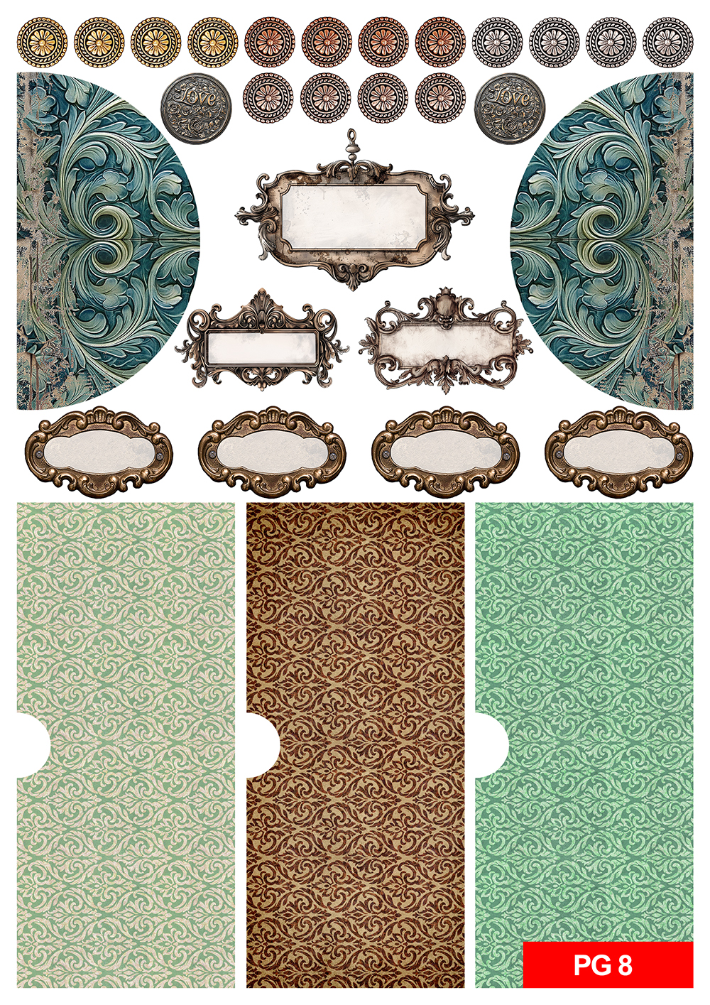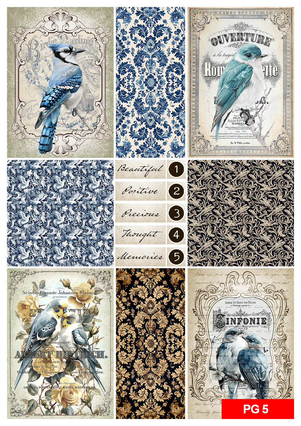 Ephemera & Textures: Decorative paper items, tags, and translucent layers to collage. (We provide coordinated vellum, printable rice paper, and fussy-cut elements).